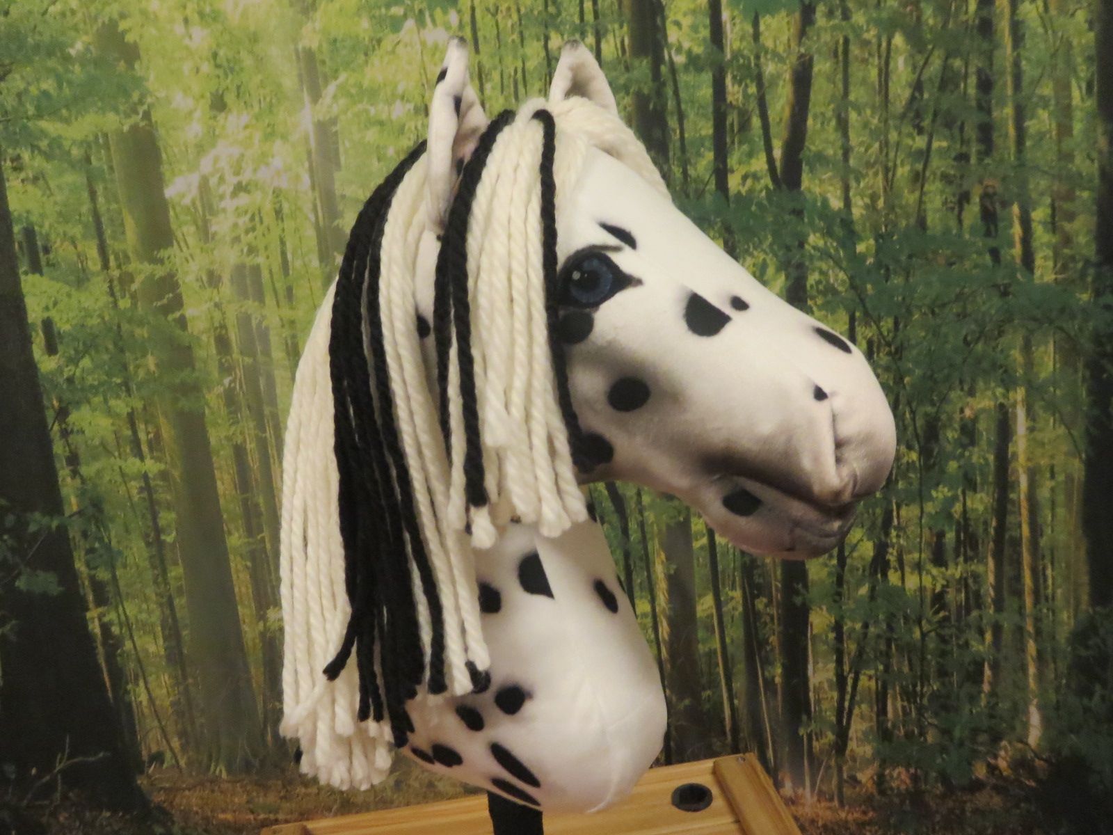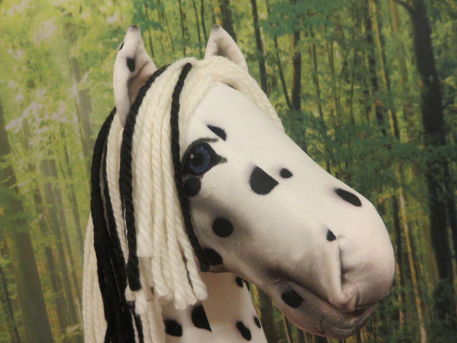 Fleckenpferd mit langem Flor.