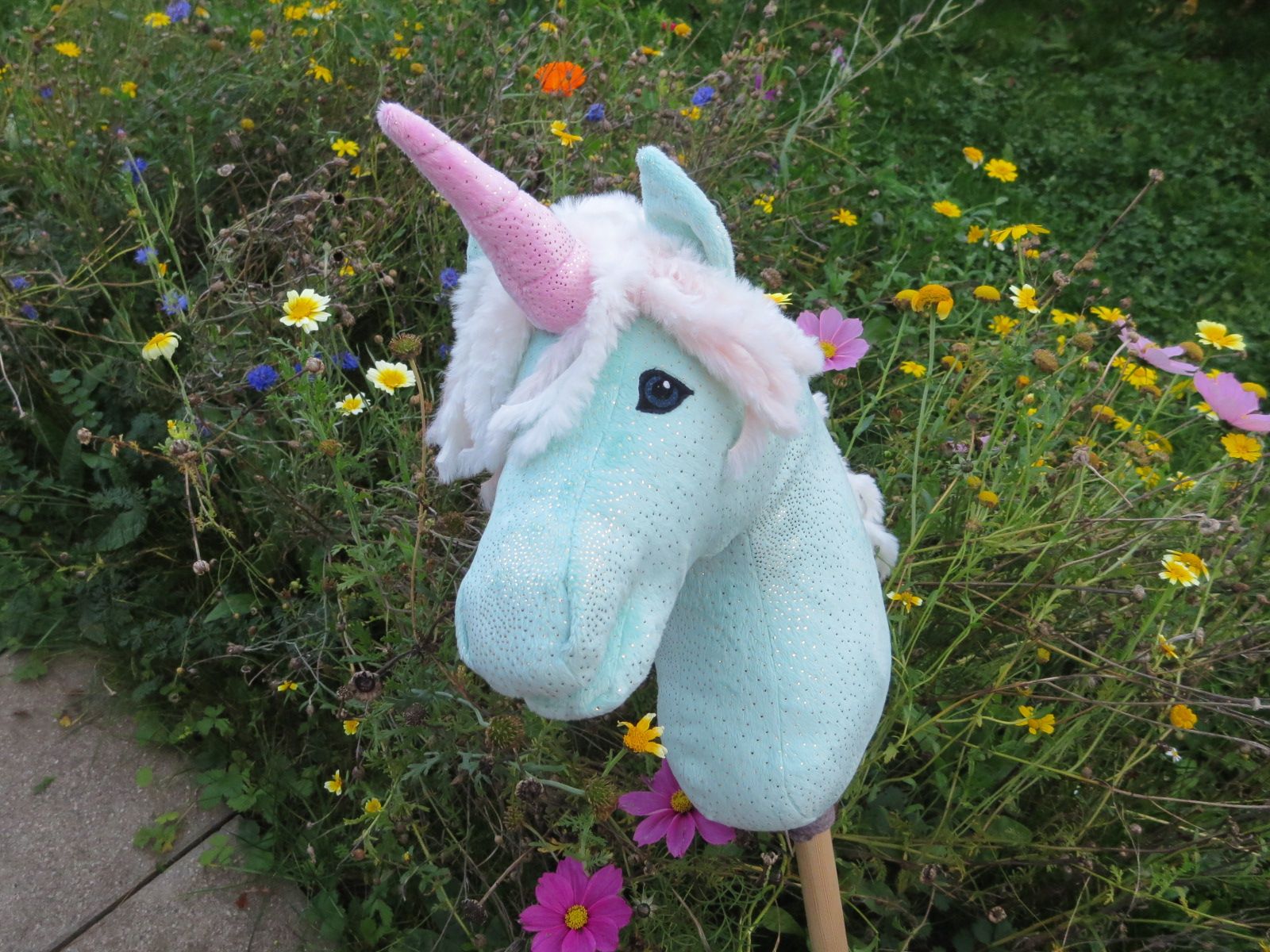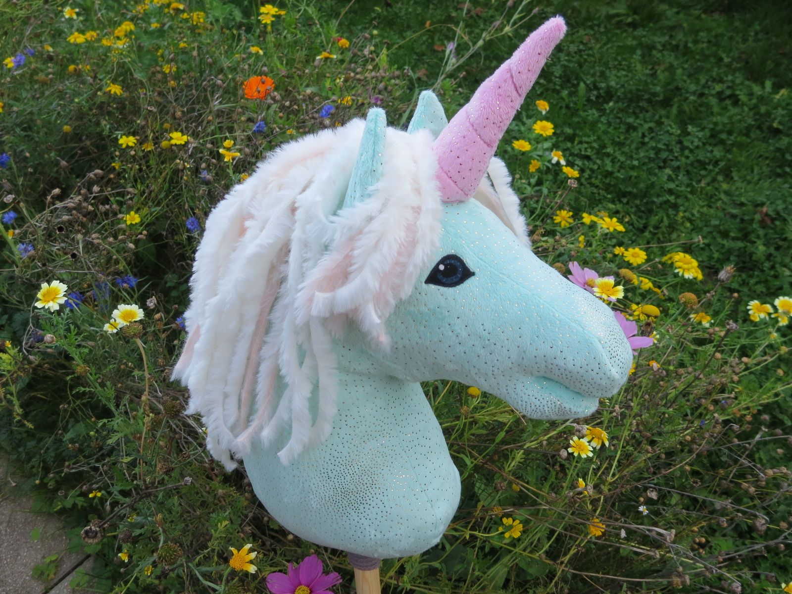 Einhorn, türkis mit rosa Horn.